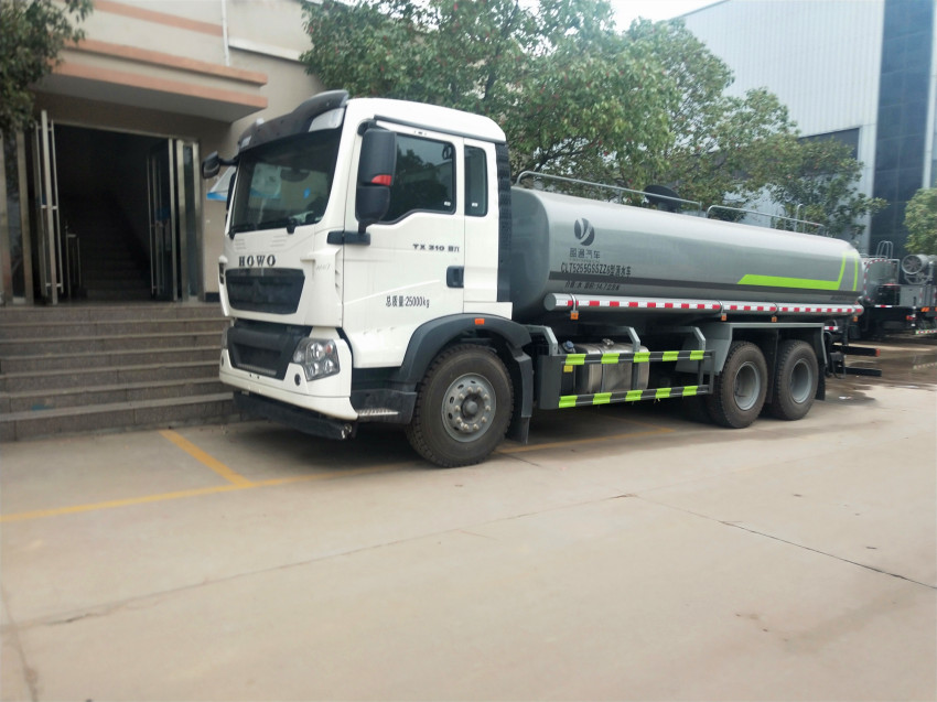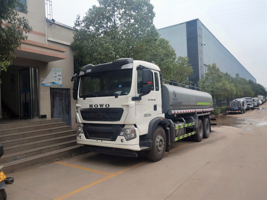 重汽20噸灑水車罐體為橢圓形或方形,采用武鋼優質碳鋼板制成,罐體倉內1.5米一道隔板,具有防波防蕩作用,還可按用戶要求進行專業的防腐防銹處理,罐體外可用發泡或巖棉加裝保溫層起保溫功能。可選裝藥盤,藥泵、高壓噴藥設備、非車帶泵動力等.、罐內防腐防銹、多方位進出水接頭、氣動閥、警燈等先進設施,以滿足不同用戶需求。