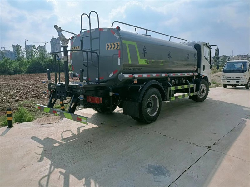 我公司產品標配前噴(鴨嘴)、后沖、后灑、側噴、后置式工作 平臺,平臺上配置綠化水炮(可 360°旋轉,既可以調成柱狀,也可 以調成霧狀,更可以調成直沖狀、大雨、中雨、小雨、毛毛雨),配 備優質大功率專用灑水泵(可自吸自排,可從河里或池塘抽水到罐體), 取力器,雜物過濾網,消防接口,自流球閥系統、取力器、球閥、濾網 均為國家標準產品,主管道加粗,法蘭墊、法蘭盤加厚,大通徑球閥。 整體具備性能優良安全可靠、效率高、流量大、維修方便等特點。