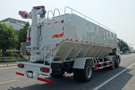 國(guó)六東風(fēng)天錦小三軸散裝飼料運(yùn)輸車(chē)-30方散裝飼料車(chē):東風(fēng)天錦VR駕駛室,康明斯245馬力發(fā)動(dòng)機(jī),法士特8檔變速箱,1800+5000mm/1800+4100mm軸距,11.00R20鋼絲胎,電動(dòng)門(mén)窗,中控鎖,原廠空調(diào),ABS,方向助力,鋁合金擋泥板,帶環(huán)保和燃油,上戶(hù)辦營(yíng)運(yùn)證無(wú)憂(yōu)!上裝采用武鋼優(yōu)質(zhì)碳鋼板,三條絞龍,頂部絞龍可180度旋轉(zhuǎn),分設(shè)四個(gè)倉(cāng),可獨(dú)立控制各個(gè)倉(cāng)的卸料順序和速度!