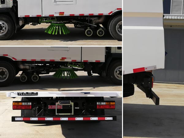 隨底盤選裝駕駛室;僅采用底盤3900mm軸距;側(cè)防護裝置與專用作業(yè)裝置干涉,無法安裝; 后下部防護裝置材料材質(zhì):Q235,連接方式:焊接加螺栓連接;后下部防護裝置斷面尺寸(寬×高):50×100(mm), 離地高度:490mm;ABS生產(chǎn)廠家:威伯科汽車控制系統(tǒng)(中國)有限公司,型號:ABS-E4S/4M; 浙江萬安科技股份有限公司,型號:VIEABS-II;廣州瑞立科密汽車電子股份有限公司,型號: CM4XL-4S/4M;主要專用裝置為箱體,清掃裝置,用于路面清掃作業(yè). |