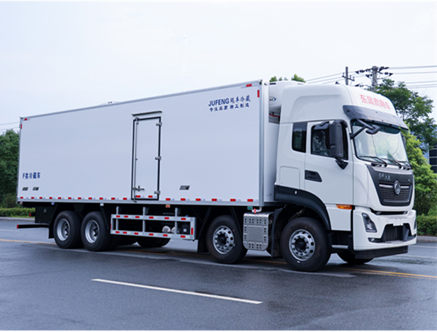 東風天龍9米6冷藏車冷機配置:可選安裝颶豐,凱利,凱雪,冷王,開利等冷藏機組,最低溫度可達-18度。車廂內溫度可根據需求自由調節;溫度控制器安裝在駕駛室內,方便操作控制。選裝配置:通風槽,肉鉤導軌,卡槽等