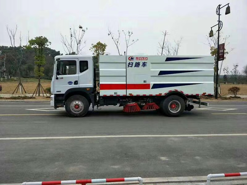 1. 采用吸掃結(jié)合的方式收集垃圾,濕式除塵、電液控制,液壓傾翻卸料的作業(yè)方式對路面進行清掃作業(yè)。