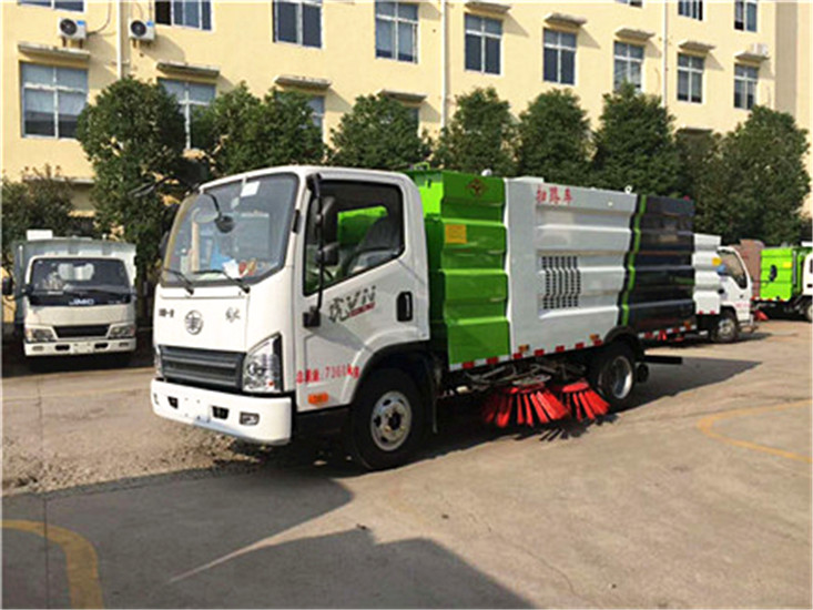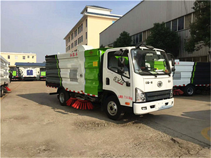 自動離合器驅動風機,減少風機啟動和停止時對發動機的沖擊。在使用過程中具有高度耐磨、使用壽命長、低噪音、低油耗量和節省成本的優點。 采用上市公司北玻臺信大功率耐磨免維護離心風機,無噪音,效率高、風量大,使用壽命長 清水箱充分利用了車載空間,容積1.5m3,內置水位報警器,水箱內部做防腐,防銹,防毒處理,使水泵運行更安全,保障了清掃的效率。 垃圾箱采用雙層內膽不銹鋼結構,容積4m3,內部加裝過濾網板,能有效地防止樹葉、塑料袋之類的輕飄物堵塞風口及灰塵的排出。內置噴霧壓塵裝置,最大限度的利用了垃圾箱裝載垃圾的空間,廂體采用傾翻卸料,解放虎V5方掃路車基本詳情,左右立掃為單掃盤,前掃盤帶自動避讓功能,減少了掃刷的數量和掃刷消耗量,能降低使用成本。掃刷上加裝噴水裝置,用于噴霧降塵。左右立掃分開控制,可實現后掃和全掃等不同的作業模式