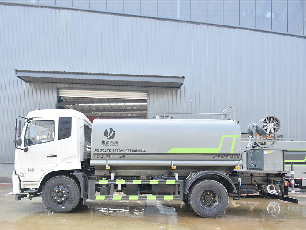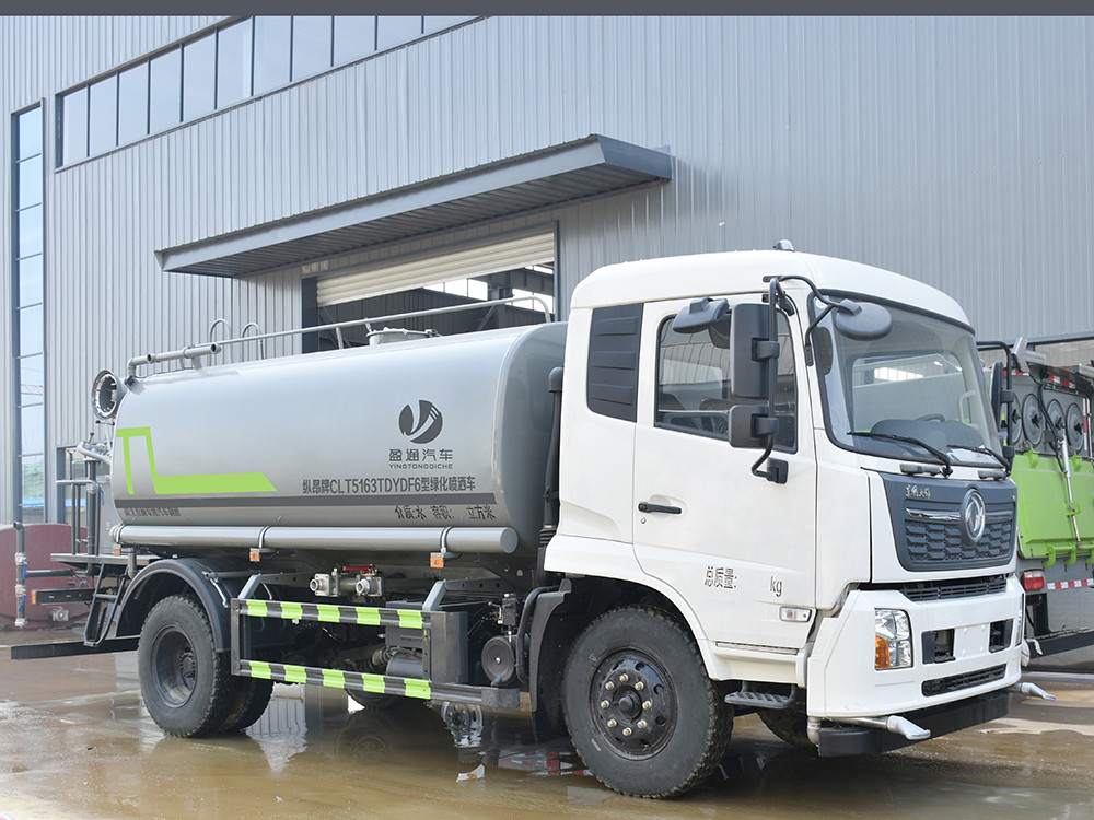 東風天錦 12 方抑塵車-灑水車產品配置 1.底盤配置: 發動機康明斯 210 馬力(6 缸),東風 6 檔變速箱,D530 排半 標準頂,4.5T 前橋,9T 后橋,10.00 鋼絲胎,軸距 4700,250 雙層大 梁,斷氣剎,空調,電動玻璃2.上裝配置: 1、罐體約為 12 方,可加裝 30-40 型霧炮 2、邊燈帶電,罐體尾部上方標配 2 個紅色示寬燈, 3、標配前噴為鴨嘴直沖,標配后沖,用戶可根據自己的需求,來調 整對沖位置。 4、花紋防滑平臺,炮筒后蓋為定制型螺栓卡扣, 5、前噴、后沖、后灑、側噴,綠化高炮開關球閥均采用 50 大通經 不銹鋼球閥, 6、新式軸承式水炮,更加耐用, 7、60-90 型水泵, 8、防腐法蘭墊片, 9、鋁制后灑,不易炸開 10、罐體自動焊(美國林肯焊機及電源),拼板自動焊接,封頭環 縫焊接,無氣孔,焊縫美觀。 11、側護網、后保險杠、均為螺栓連接,方便拆卸,維修方便。 12、塑料擋泥板,替代鐵擋泥板,更加輕便,用螺栓連接,方便拆 卸。 13、前部、后部主管連接處為 6 孔圓法蘭,不易沖墊