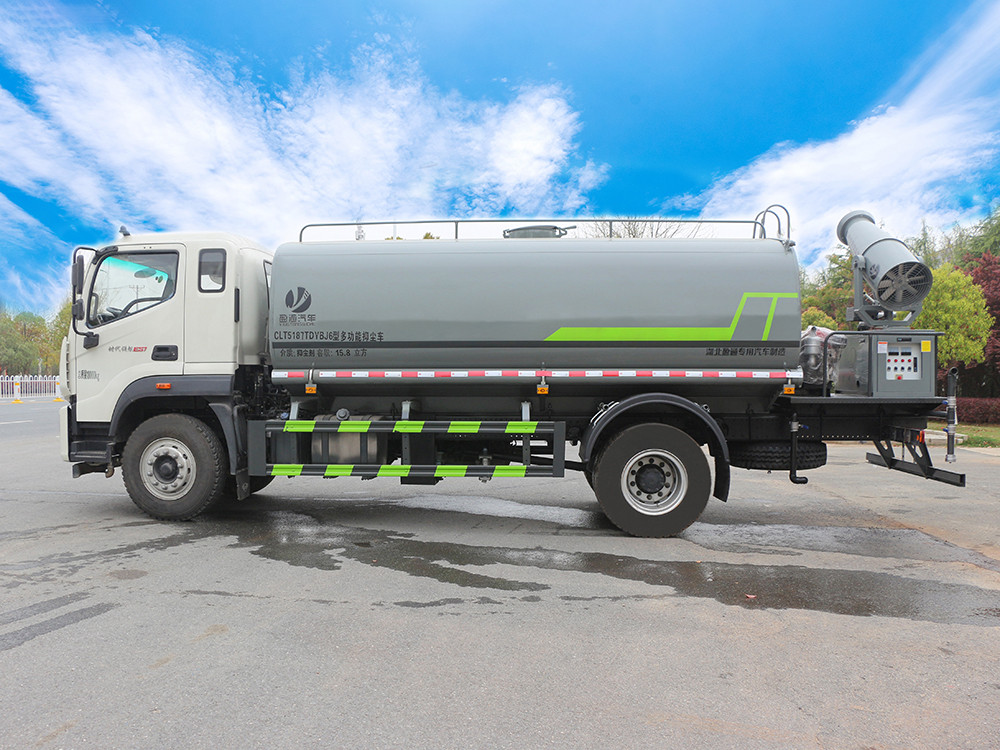 二.產(chǎn)品配置 1.底盤配置: 發(fā)動機玉柴 245 馬力(六缸),法士特 8 檔,3950 軸距,10.00 鋼絲胎,前 4.5T/后 10T,中控鎖,電動玻璃,助力,空調(diào),行車記錄 儀2.上裝配置: 1、罐體約為 12 方,可加裝 30-40 型霧炮 2、邊燈帶電,罐體尾部上方標(biāo)配 2 個紅色示寬燈, 3、標(biāo)配前噴為鴨嘴直沖,標(biāo)配后沖,用戶可根據(jù)自己的需求,來調(diào) 整對沖位置。 4、花紋防滑平臺,炮筒后蓋為定制型螺栓卡扣, 5、前噴、后沖、后灑、側(cè)噴,綠化高炮開關(guān)球閥均采用 50 大通經(jīng) 不銹鋼球閥, 6、新式軸承式水炮,更加耐用, 7、60-90 型水泵, 8、防腐法蘭墊片, 9、鋁制后灑,不易炸開 10、罐體自動焊(美國林肯焊機及電源),拼板自動焊接,封頭環(huán) 縫焊接,無氣孔,焊縫美觀。 11、側(cè)護網(wǎng)、后保險杠、均為螺栓連接,方便拆卸,維修方便。 12、塑料擋泥板,替代鐵擋泥板,更加輕便,用螺栓連接,方便拆 卸。 13、前部、后部主管連接處為 6 孔圓法蘭,不易沖墊