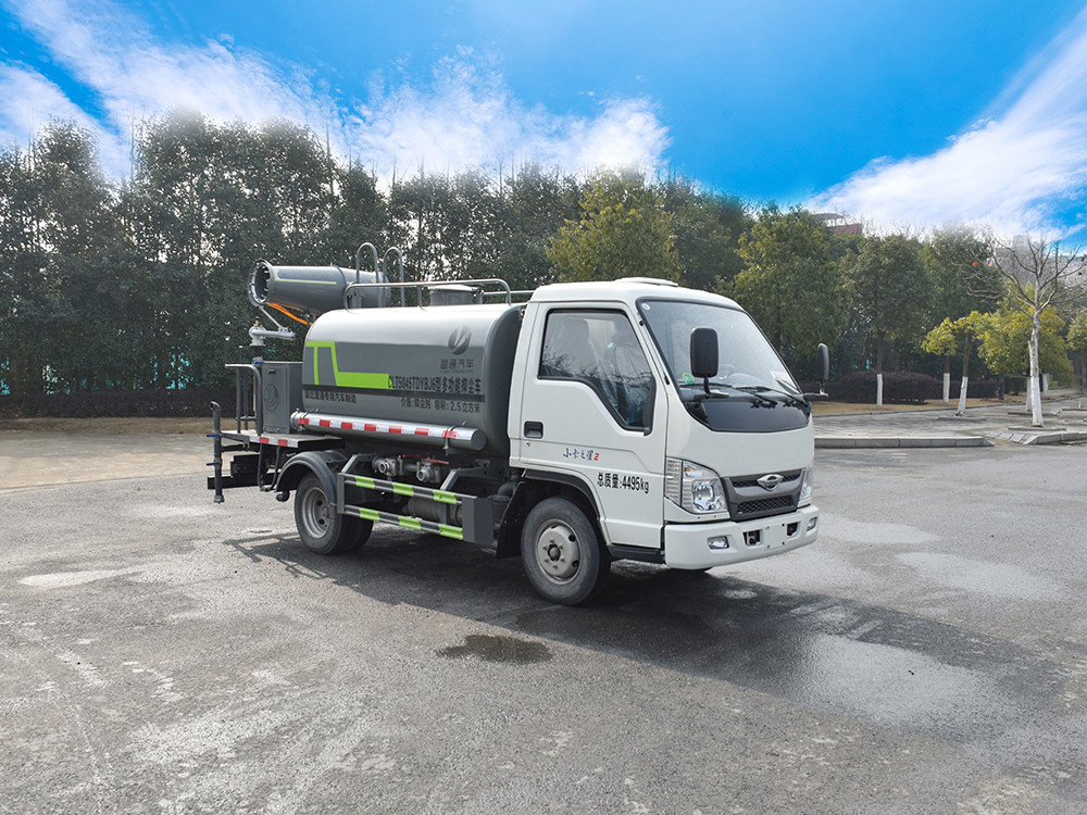 福田小卡 2.7 方抑塵車產品配置 1.底盤配置: 發動機全柴 95 馬力,軸距 2600,蒙沃 5 檔箱,6.00 鋼絲胎, 動力轉向、TBOX、油剎2.上裝配置: 1、罐體約為 2.7 方,可加裝 30 型霧炮 2、邊燈帶電,罐體尾部上方標配 2 個紅色示寬燈, 3、標配前噴為鴨嘴直沖,標配后沖,用戶可根據自己的需求,來調 整對沖位置。 4、花紋防滑平臺,炮筒后蓋為定制型螺栓卡扣, 5、前噴、后沖、后灑、側噴,綠化高炮開關球閥均采用 50 大通經 不銹鋼球閥, 6、新式軸承式水炮,更加耐用, 7、40-50 型水泵, 8、防腐法蘭墊片, 9、鋁制后灑,不易炸開 10、罐體自動焊(美國林肯焊機及電源),拼板自動焊接,封頭環 縫焊接,無氣孔,焊縫美觀。 11、側護網、后保險杠、均為螺栓連接,方便拆卸,維修方便。 12、塑料擋泥板,替代鐵擋泥板,更加輕便,用螺栓連接,方便拆 卸。 13、前部、后部主管連接處為 6 孔圓法蘭,不易沖墊