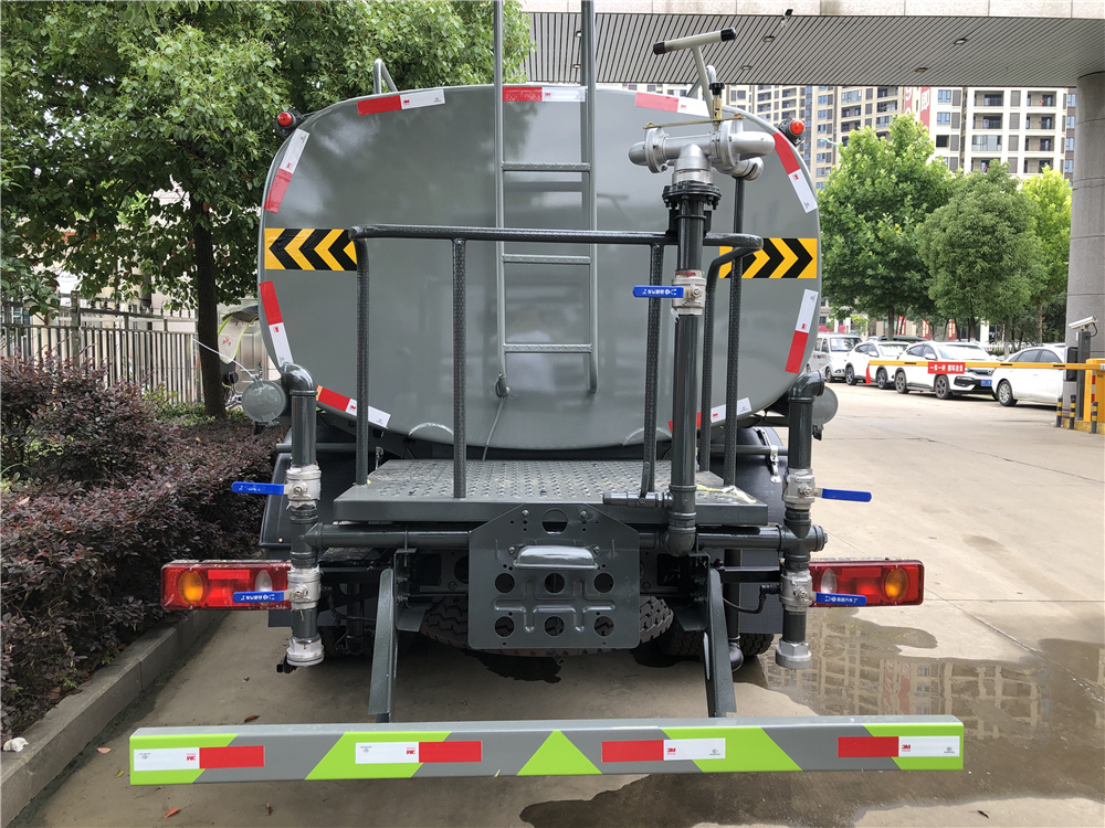 東風(fēng)華神T1灑水車(chē)專(zhuān)用功能配置:罐體實(shí)際容積約為9.35立方米,采用武鋼優(yōu)質(zhì)碳鋼板卷壓成型。配備專(zhuān)用灑水泵,自吸自排,前噴后灑、側(cè)噴、后工作平臺(tái)及灑水高壓炮。灑水泵自吸高度為6米左右,整車(chē)灑水寬度14米左右,后工作平臺(tái)水炮可調(diào)成:直沖狀、大雨、中雨、小雨、毛毛雨,有效射程≥28米,整車(chē)帶接頭、水位計(jì),自流閥。后工作平臺(tái)主管道有一個(gè)一寸的澆花接口,附送2根3米水管,1個(gè)爬梯,兩側(cè)及后保險(xiǎn)杠。