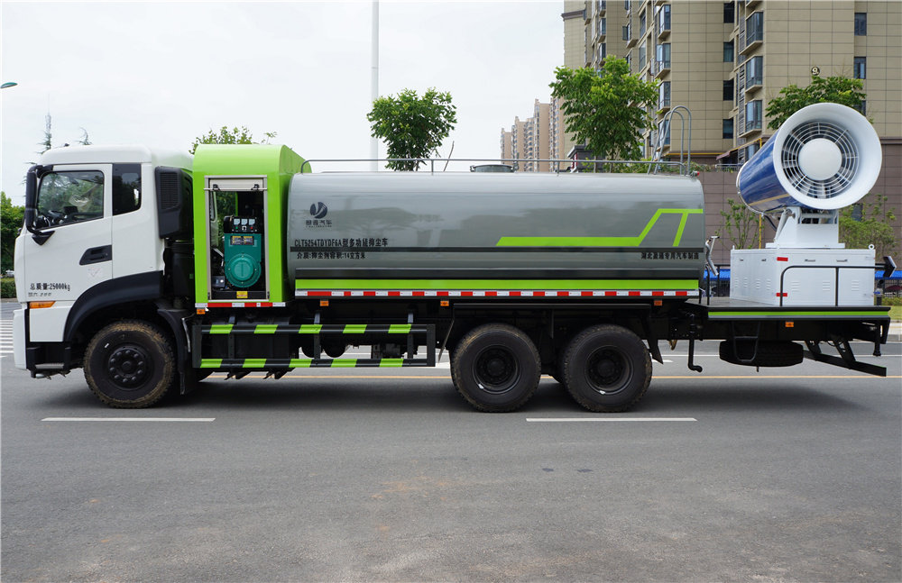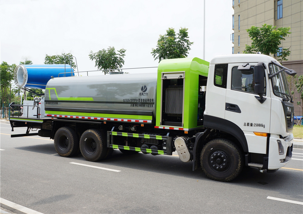 空調、電動玻璃、中控鎖、氣囊座椅、行車記錄儀、轉向器及離合器液壓助力,氣壓制動,排氣制動。專用功能配置:罐體實際容積約為17立方米,(罐體有效參數14立方米、額定載質量10620kg、)采用武鋼優質碳鋼板卷壓成型。配備專用灑水泵,自吸自排,前噴后灑、側噴、后工作平臺及灑水高壓炮。灑水泵自吸高度為6米左右,整車灑水寬度14米左右,后工作平臺水炮可調成:直沖狀、大雨、中雨、小雨、毛毛雨,有效射程≥28米,整車帶接頭、水位計,自流閥。后工作平臺主管路帶1寸澆花接口,附送2根3米水管,1個爬梯,兩側及后保險杠。