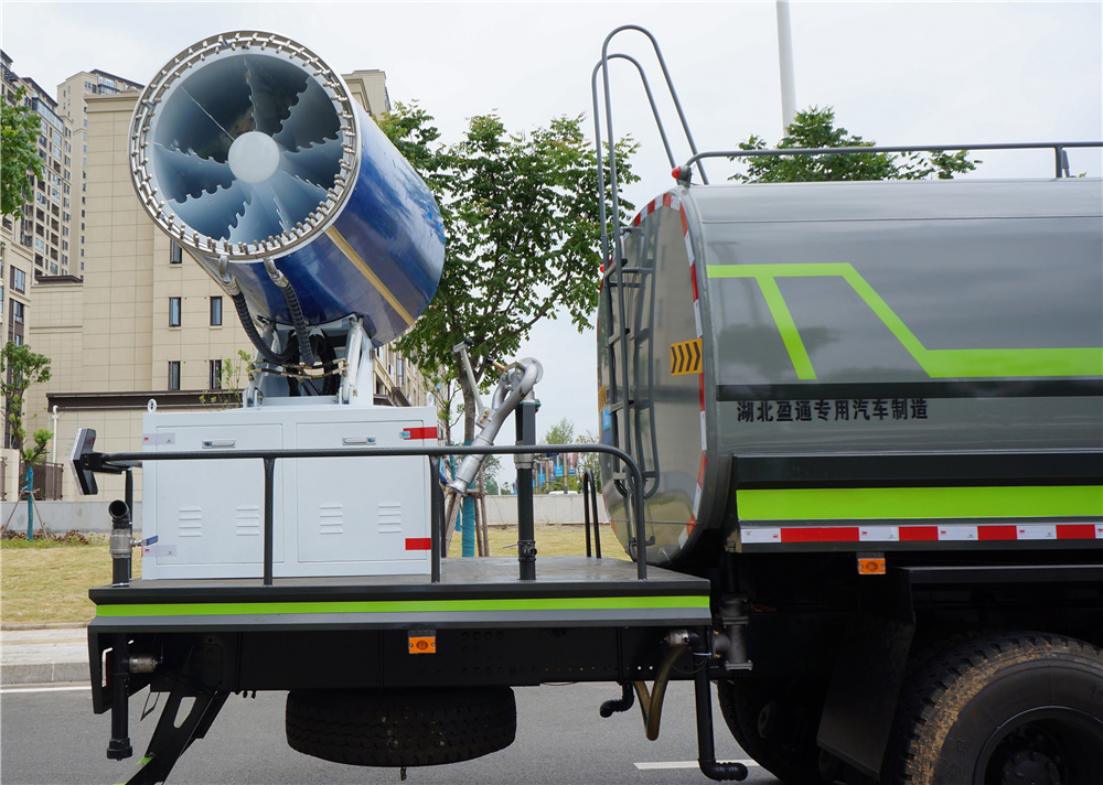 3、后平臺可加裝60米、80米、100米全自動柴油大霧炮機組;可噴灑農藥,防役消毒,工地噴霧,拆遷降塵多功能使用。