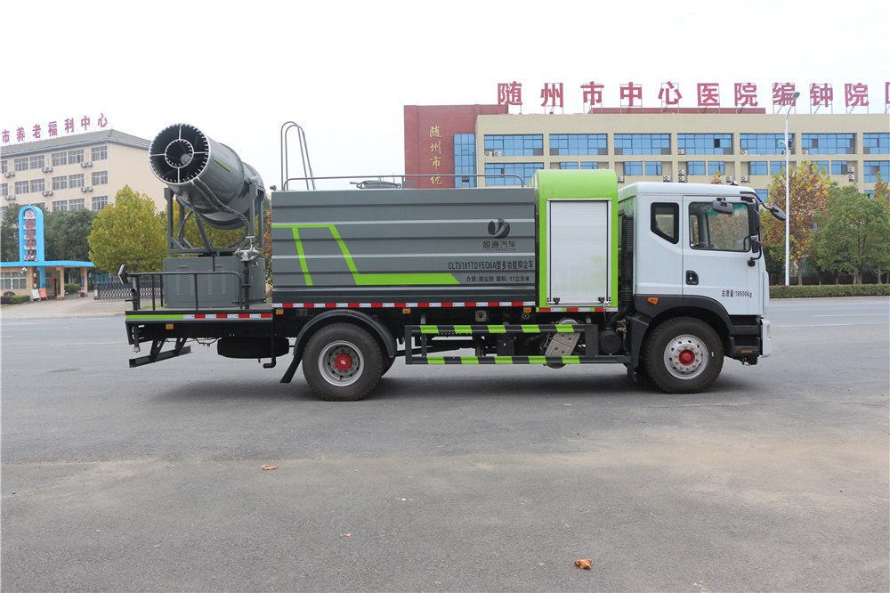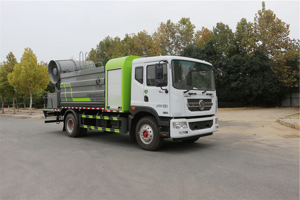 霧炮車專用功能配置:罐體實際容積約為11-12立方米,公告有效參數11立方米、采用武鋼優質碳鋼板卷壓成型。配備專用灑水泵,前噴后灑、左右對沖、側噴、后工作平臺及灑水高壓炮。灑水泵自吸高度為6米左右,整車灑水寬度14米左右,后工作平臺水炮可調成:直沖狀、大雨、中雨、霧狀,有效射程≥28米,后主管道帶一個一寸澆花接口、整車帶接頭、水位計,自流閥及自吸功能。附送2根3米水管,1個爬梯,兩側及后保險杠。