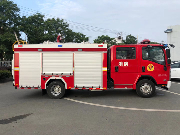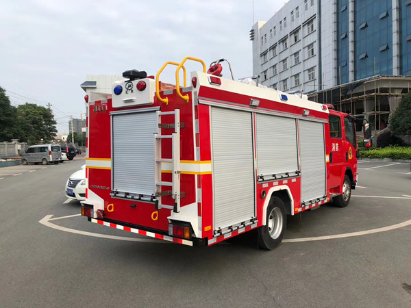 慶鈴五十鈴3噸泡沫消防車采用700P慶鈴底盤改裝,平頭雙排駕駛室,液壓翻轉(zhuǎn),慶鈴五十鈴4HK1-TC51發(fā)動機,190馬力,國五排放,罐體容積3.1立方米;整車結(jié)構(gòu)緊湊,方便靈活,動力性能好,車速高,能自由進出鄉(xiāng)村狹窄道路及小區(qū),具有消防車的全套消防功能,上裝箱體的上裝骨架全部采用引進歐洲技術(shù)生產(chǎn)的鋁合金型材制造,整車的重量減少,機動性能和整車載重量提高。除了裝備消防水泵及器材以外,還設(shè)有較大容量的貯水罐及水槍、水炮等。可將水和消防人員輸送至火場獨立進行撲救火災(zāi)。也可以從水源吸水直接進行撲救,或向其他消防車和滅火噴射裝置供水。在缺水地區(qū)也可作供水、輸水用車,主要適用于大中城鎮(zhèn)、鄉(xiāng)村狹窄街道、城市小區(qū)、繁忙的批發(fā)市場等場所的一般物質(zhì)滅火,閑暇時可用于園林噴灌、道路清灑。