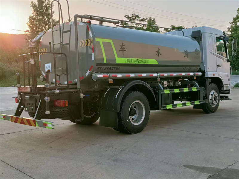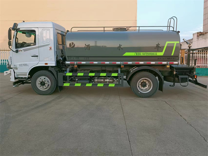 東風12噸灑水車產品主要技術參數 序號 名稱 型號、規格 1 整車型號 CLT5160GPSEQ6 型綠化噴灑車 2 發動機型號 YCY30165-60 3 發動機馬力/功率 玉柴 160 馬力/121KW 4 發動機排量 2970ML 5 變速箱 法士特 8 檔(帶高低檔) 6 輪胎規格 9.00 鋼絲胎 7 軸距 3950 8 總質量 16000KG 9 整備質量 6100KG 10 額定載質量 9705KG 11 整車尺寸(長×寬×高) 7.65*2.5*3.2 12 罐體容積 12 方 13 燃料種類 柴油 14 排放標準 國六 15 水泵型號 60/90 16 罐體材質 Q235 碳鋼