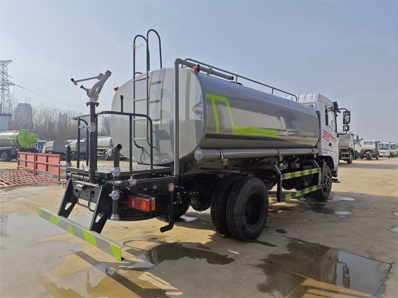 12噸灑水車標配前噴(鴨嘴)、后沖、后灑、側噴、后置式工作 平臺,平臺上配置綠化水炮(可 360°旋轉,既可以調成柱狀,也可 以調成霧狀,更可以調成直沖狀、大雨、中雨、小雨、毛毛雨),配 備優質大功率專用灑水泵(可自吸自排,可從河里或池塘抽水到罐體), 取力器,雜物過濾網,消防接口,自流球閥系統、取力器、球閥、濾網 均為國家標準產品,主管道加粗,法蘭墊、法蘭盤加厚,大通徑球閥。 整體具備性能優良安全可靠、效率高、流量大、維修方便等特點。