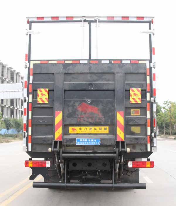 備注 | 福田ES7冷藏車該車用于冷藏運輸的廂式汽車,裝備有隔熱結構的車廂和制冷裝置.貨廂頂部封閉,不可開啟.安裝液壓尾板,液壓尾板收起狀態的水平長度為300mm,尾板重量為550kg.側/后下部防護裝置,材料均為:Q235碳鋼,連接方式均為:螺栓連接;后下部防護截面尺寸(mm):直徑120,離地高度:480mm.選裝不帶液壓尾板時,側/后下部防護裝置,材料均為:Q235碳鋼,連接方式均為:螺栓連接;后下部防護截面尺寸(mm):120×60,離地高度:480mm.ABS型號為CM4XL-4S/4M,生產廠家為廣州瑞立科密汽車電子股份有限公司.安裝符合規定的具有衛星定位功能的行駛記錄儀.選裝直接供電方式的ETC車載裝置.采用的發動機對應油耗值(L/100km)分別為:F4.5NS6B220/24.40,WP4.6NQ220E61/25.89,YCS06270-60/24.58.選裝其他廠家功率相當不同型號的制冷機組.整車長度/軸距/前懸/后懸對應關系為(mm):10250/5700/1290/3260,9050/5250/1290/2510,9250/5250/1290/2710,9050/5150/1290/2610,9250/5150/1290/2810,8550/4800/1290/2460,8150/4500/1290/2360.隨底盤選裝限速裝置,限速90km/h. | ||
