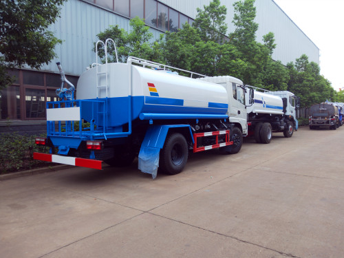 灑水車配置前沖、后灑、左右側噴水、帶后工作平臺、平臺上安裝綠化灑水高炮(炮噴射形狀可調節:直沖、大雨、中雨毛毛雨、霧狀、可連續調節,360°旋轉),配消防接口,自流閥,濾網,帶專用灑水泵具有自吸自排功能灑水寬度≧14-16米,射程25-30米,帶增壓,方向助力。罐體采用優質碳鋼制作。帶兩根輸水軟管
