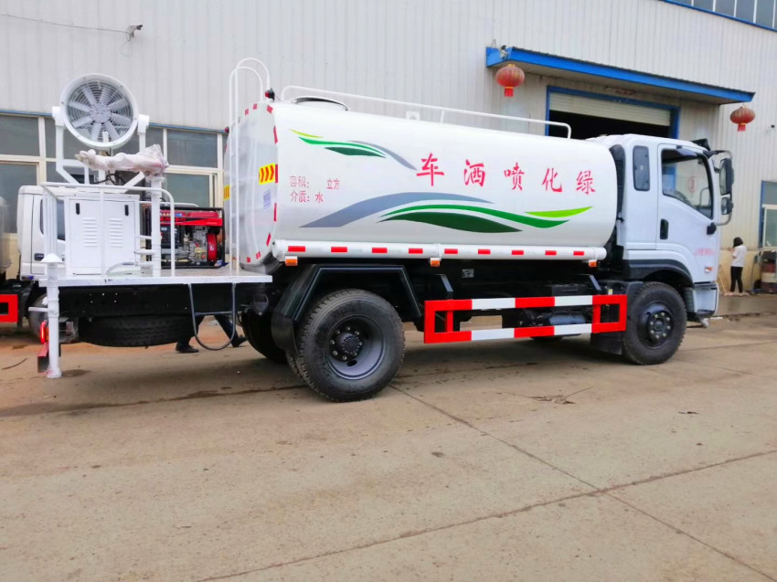 吸程≧7米,灑水寬度≧14-16米,射程≧25-30米,引水時間<5min,流量60m3/h。前沖(噴)、后灑、帶側噴(花灑)、帶后工作平臺、平臺上安裝綠化灑水高炮(炮噴射形狀可調節:直沖、大雨、中雨、毛毛雨、霧狀、可連續調節,360°旋轉),配消防接口,自流閥,濾網,帶自吸自排功能。配備大功率專用灑水泵,泵可自吸自排,安裝過濾網,帶消防接口,可通過消防栓進水,帶自流閥,隨車選裝20米綠化卷盤,可噴灑農藥,罐體金屬漆。罐體有橢圓和方圓罐兩種,可根據用戶的要求定做,前橋5噸,后橋10噸,康明斯190匹馬力國五發動機,法士特8檔變速箱,ABS,空調