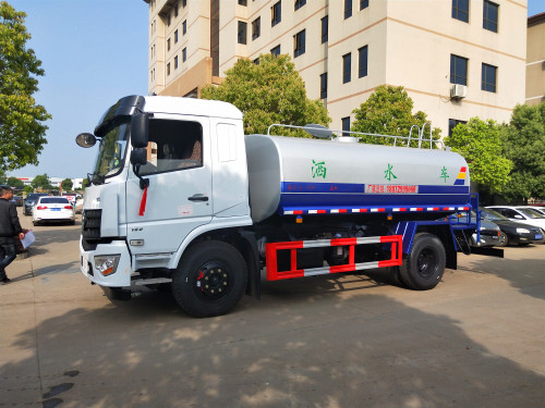 上裝配置:罐體容積為8-10立方灑水車(chē),罐體鋼板為4mm碳鋼Q235材質(zhì),罐內(nèi)隔板具有防波作用,以減輕汽車(chē)行駛時(shí)罐體液體沖擊,罐體及整車(chē)外形尺寸按照公告。帶大功率專(zhuān)用灑水泵,泵可自吸自排,整車(chē)前沖、后灑、側(cè)噴、帶65消防接口,后平臺(tái)帶綠化灑水炮,灑水炮可全方位旋轉(zhuǎn),可連續(xù)調(diào)成直沖狀、大雨、小雨、毛毛雨;前封頭帶水位計(jì),后平臺(tái)主管路帶1寸澆花接口,后爬梯。平臺(tái)后部帶小安全告知牌:“隨時(shí)停車(chē),注意安全”,帶兩根水管及陰陽(yáng)端。罐體顏色:上白/下藍(lán),銀灰/銀藍(lán),罐體兩側(cè)噴“灑水車(chē)、綠化噴灑車(chē)”字樣,貼反光標(biāo)示。灑水車(chē)可加裝前沖后灑氣動(dòng)閥駕駛室控制、可加裝霧炮機(jī)組發(fā)電機(jī)組噴霧降塵裝置、車(chē)頭可加裝推雪雪鏟、雪滾裝置街道、公路除雪等。