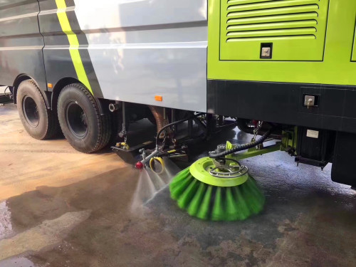 翻卸料的作業(yè)方式對路面進(jìn)行刷洗作業(yè)。