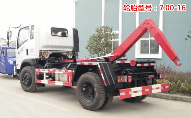 重汽王牌7系勾臂式垃圾車(chē),重汽王牌7系底盤(pán),采用錫柴87馬力發(fā)動(dòng)機(jī),5檔變速箱,軸距3.36米,輪胎型號(hào):7.00-16,帶ABS,方向助力。
