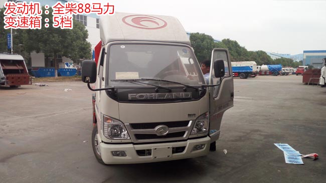福田小卡之星掛桶式垃圾車,小卡之星2車身、1700mm寬駕駛室、單排前翻、全柴88馬力發動機,5檔變速箱、6.50R16鋼絲胎、帶動力轉向、ABS、可調方向盤、電控熄火。