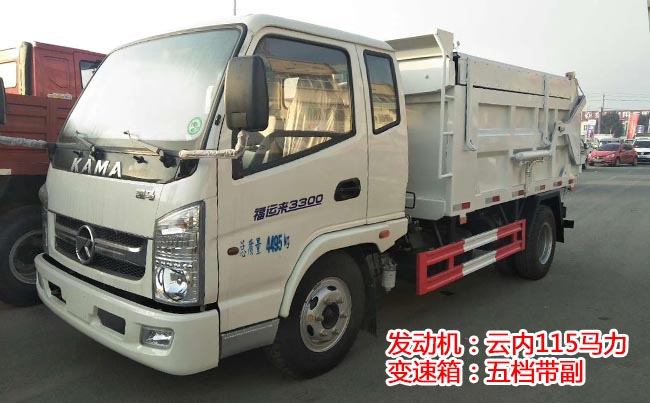 凱馬凱捷側裝式對接壓縮垃圾車,凱捷1830豪華單排,云內95馬力。5檔變速箱,軸距3.3米,4.5噸后橋,7.00-16輪胎,斷氣剎,帶方向助力,ABS,原廠空調。