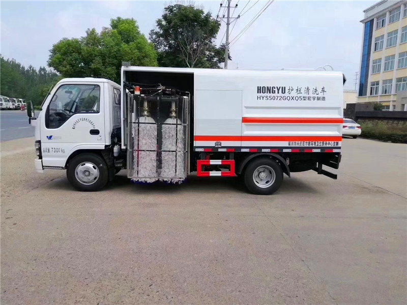 湖北宏宇專用汽車有限公司生產(chǎn)的“虹宇牌”HYS5072GQXQ5型護欄清洗車:國五排放標準(國六排放及新能源天然氣均有現(xiàn)車)水箱容積高達4m3,可連續(xù)作業(yè)4小時,采用最先進的液壓控制護欄清洗臂系統(tǒng),水平方向可180°升縮,上下方向可180°調(diào)節(jié),前置滾刷可進行180°旋轉(zhuǎn),可以輕松應對各種形式的護欄