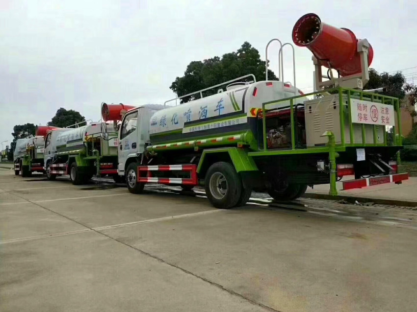 功能配置:帶前部沖洗路面噴灑裝置、后部扇形降塵噴灑裝置,兩側面噴灑裝置,帶后部工作平臺、平臺上安裝綠化灑水炮(炮噴射形狀可調),可調直沖狀、大雨、中雨、毛毛雨,可連續(xù)調節(jié),最大射程可達28米,垂直吸程6.5米,揚程14米,另加裝高效率車載式風送噴霧機,噴藥炮霧化效果好,可遠程噴霧,水平射程達25米。帶消防接口、自流閥,可自吸自排。