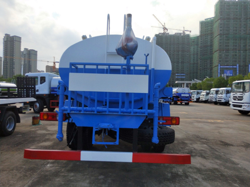 灑水車罐體的橫截面為橢圓形(或方形),內(nèi)部焊防波板以減少?zèng)_擊,頂部設(shè)有人孔蓋,在罐體的底部有自流管用來排放積水,罐體底部有罐足通過U型螺栓與底盤固定在一起。