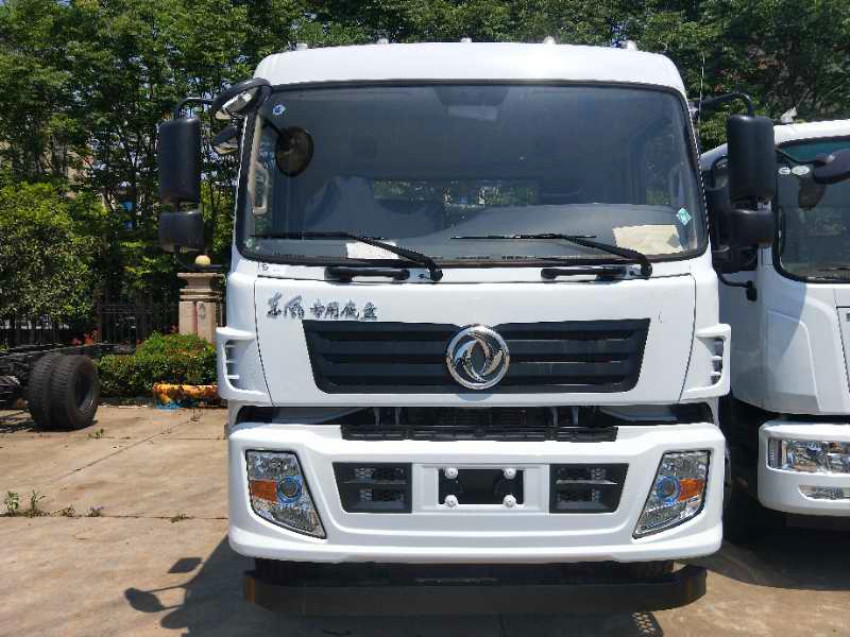 底盤配置:國六東風底盤,排半駕駛室,康明斯210馬力,4500軸距,ABS,斷氣剎,275/80R22.5 18PR真空胎,東風六檔變速箱。
