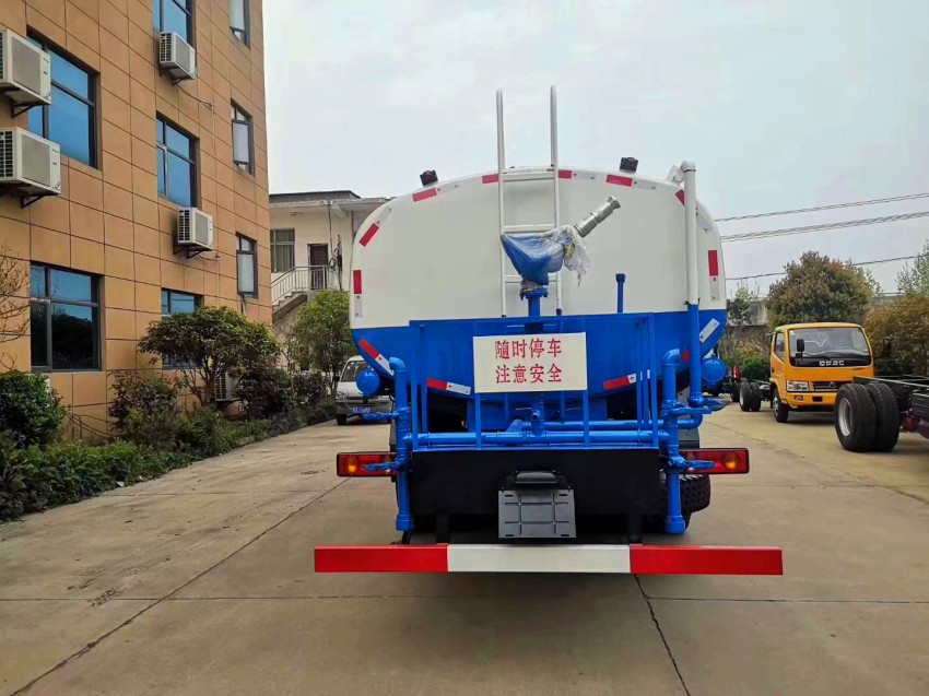 灑水車吸程≧7米,灑水寬度≧14-16米,射程≧25-40米,引水時間<5min,流量60m3/h。前沖(噴)、后灑、帶側噴(花灑)、帶后工作平臺、平臺上安裝綠化灑水高炮(炮噴射形狀可調節:直沖、大雨、中雨、毛毛雨、霧狀、可連續調節,360°旋轉),配消防接口,自流閥,濾網,帶自吸自排功能。配備大功率專用灑水泵,泵可自吸自排,安裝過濾網,帶消防接口,可通過消防栓進水,帶自流閥,此車尾部加裝大功率農藥噴灑炮,