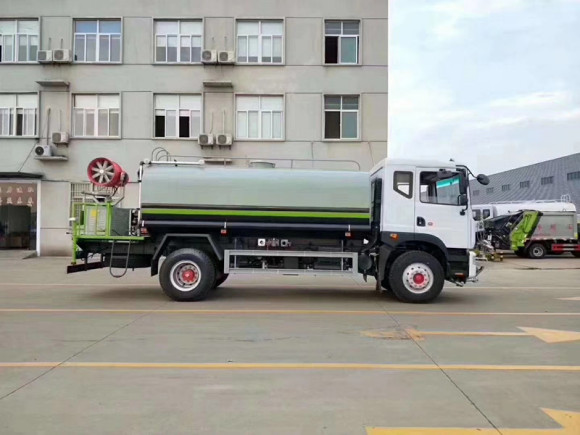 灑水車吸程≧7米,灑水寬度≧14-16米,射程≧25-40米,引水時(shí)間<5min,流量60m3/h。前沖(噴)、后灑、帶側(cè)噴(花灑)、帶后工作平臺(tái)、平臺(tái)上安裝綠化灑水高炮(炮噴射形狀可調(diào)節(jié):直沖、大雨、中雨、毛毛雨、霧狀、可連續(xù)調(diào)節(jié),360°旋轉(zhuǎn)),配消防接口,自流閥,濾網(wǎng),帶自吸自排功能。配備大功率專用灑水泵,泵可自吸自排,安裝過(guò)濾網(wǎng),帶消防接口,可通過(guò)消防栓進(jìn)水,帶自流閥,此車尾部加裝大功率農(nóng)藥噴灑炮,