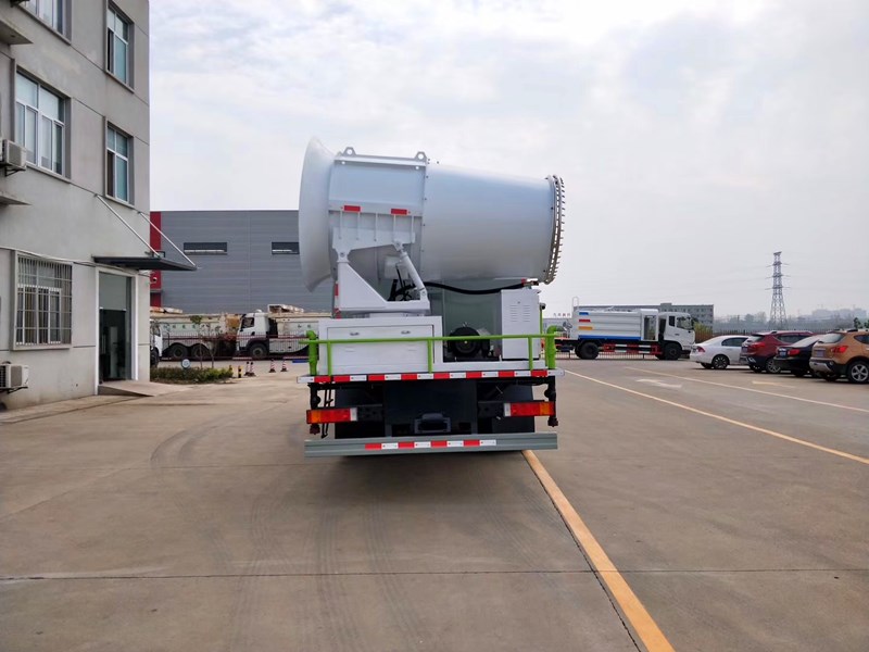 專用裝置為抑塵霧炮,用于城市抑塵.防護材料:Q235A碳鋼,連接方式:左右側面及后部防護均采用焊接連接,后部防護斷面尺寸(mm):150×50,后部防護離地高度(mm):500.ABS型號/生產廠家:3631010-C2000/東科克諾爾商用車制動系統(十堰)有限公司,ABS 8/東科克諾爾商用車制動系統(十堰)有限公司,4460046450/威伯科汽車控制系統(中國)有限公司.隨底盤選裝駕駛室.