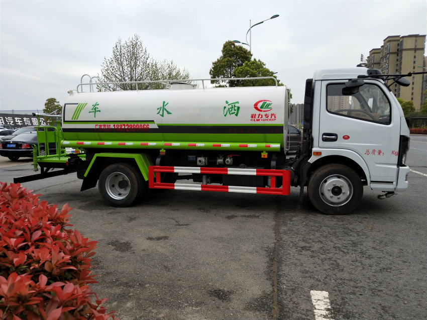 新款國六灑水車底盤配置:采用東風D7系列新款駕駛室,3800mm軸距,搭載國六(國Ⅵ)東風朝柴170馬力發動機/廣西玉柴140馬力發動機,萬里揚6檔變速箱,5.5T后橋,245/70R19.5真空胎,氣剎,斷氣剎,電動窗,中控鎖,多功能方向盤,日間行車LED水晶燈,東風原廠空調,ABS,GB7258新規