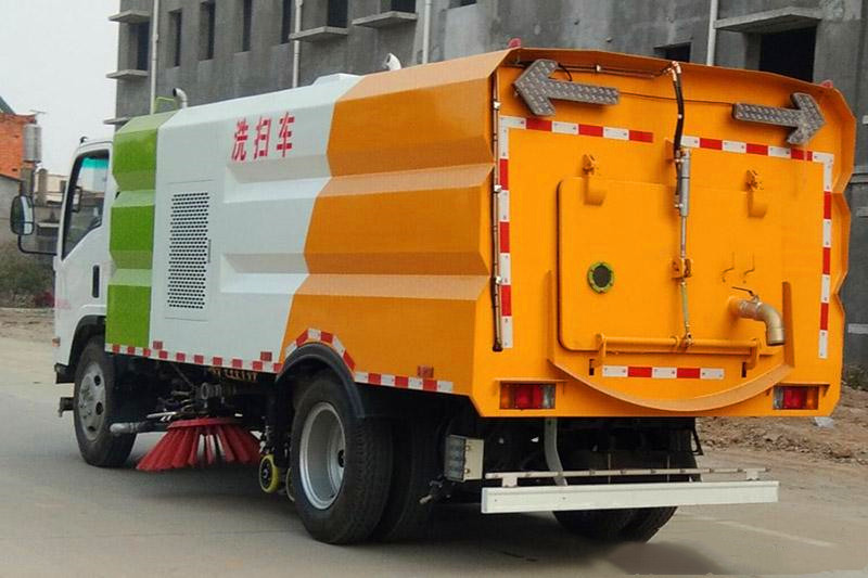 11、五十鈴700P洗掃車|五十鈴5噸多功能洗掃車的垃圾箱內帶有自潔功能,在垃圾傾倒完成后可將箱內的殘留垃圾沖洗干凈,減輕環(huán)衛(wèi)工人的負擔。