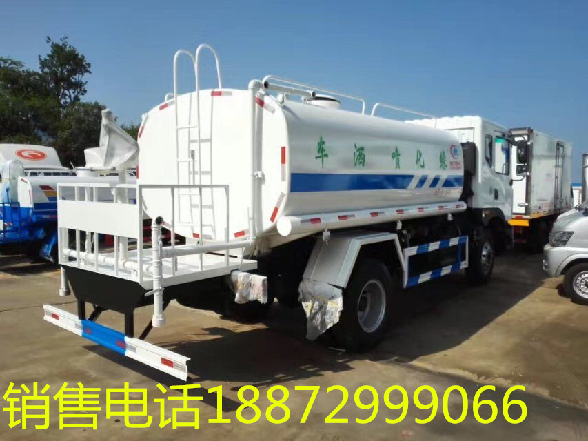 2、前部安裝鴨嘴式噴頭兩個,后部帶錐形對沖噴頭兩個,后工作平臺 上 部左右各安裝花灑噴頭1個,后平臺下部左右各安裝后灑砣噴頭1個,罐體右側上端安裝高位花灑噴頭兩個,平臺上安裝綠化灑水高炮,炮可全方位旋轉,可連續調成直沖狀、大雨、小雨、毛毛雨,帶安全護欄。罐體右后部帶自上水裝置,帶自流閥。