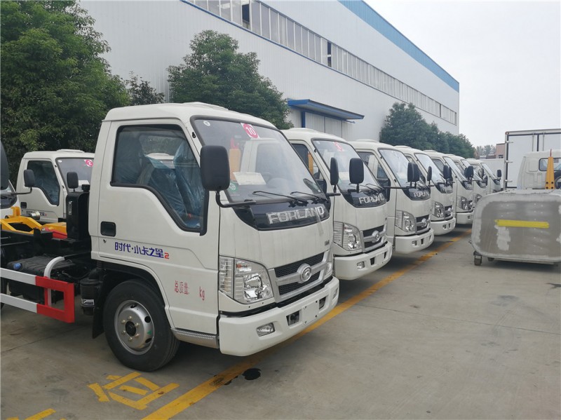 福田馭菱3方勾臂式垃圾車采用高新設計可擺得鉤臂,一車可帶多個大廂,裝卸方便,實現車廂的二次吊裝并使機構最為省力,具有結構簡單,操作穩定方便,高效率裝卸,節省人力等優點。鉤臂垃圾車可根基用戶要求配備若干個垃圾轉運箱。轉運箱可作為一個簡易、美觀、環保的垃圾轉運站,最大限度提高了車輛的使用效率。