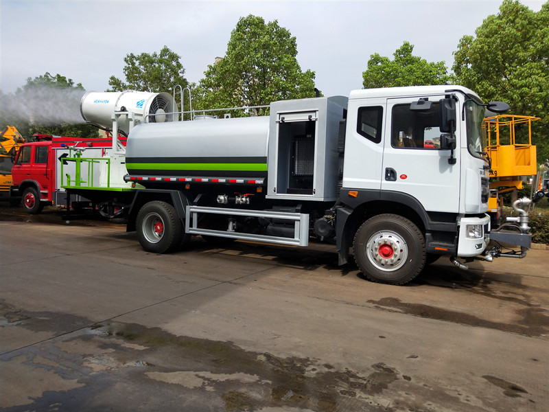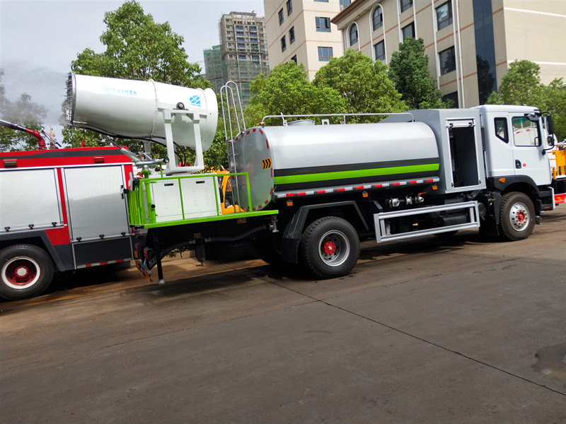 專用部分:帶前沖、后灑、側噴、后工作平臺、尾部帶綠化炮,帶自吸自排灑水泵,后工作平臺高壓水炮直沖射程25-30米(可調成:直沖狀、大雨、中雨、小雨、毛毛雨),整車帶消防接頭、自流閥。附送2根水管。加裝30型霧炮,帶8千瓦柴油發電機組,霧炮可以遙控操作。