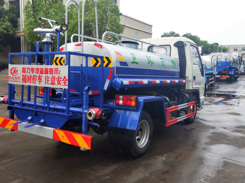 灑水車性能簡介:吸程≧7米,灑水寬度≧14-16米,射程≧25-40米,引水時間<5min,流量60m3/h。前沖(噴)、后灑、帶側噴(花灑)、帶后工作平臺、平臺上安裝綠化灑水高炮(炮噴射形狀可調節:直沖、大雨、中雨、毛毛雨、霧狀、可連續調節,360°旋轉),配消防接口,自流閥,濾網,帶自吸自排功能。