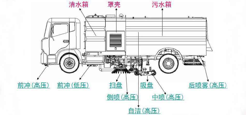 洗掃車底盤配置:采用東風柳汽原裝底盤,5100mm軸距,玉柴180大馬力土豪金定制版,動力更強,M31A四點全浮駕駛室,采用國內首創龍骨架結構,安全性更高,8JS75C變速箱,速比極差小,多工況適應性更好,有效達到動力性和經濟性的完美結合,車輛行駛更省油,9T/4.875后橋,9.00R20鋼絲胎,264(6)大梁,采用亞洲最大的6300噸沖壓機,一次沖壓成型,內外層緊密結合,優于鉚接,250L鋁合金油箱,氣囊減震座椅,ABS采用WABCO牌,提高制動性能可靠性,車載終端,進口配置空調,遙控中控鎖,電動門窗。