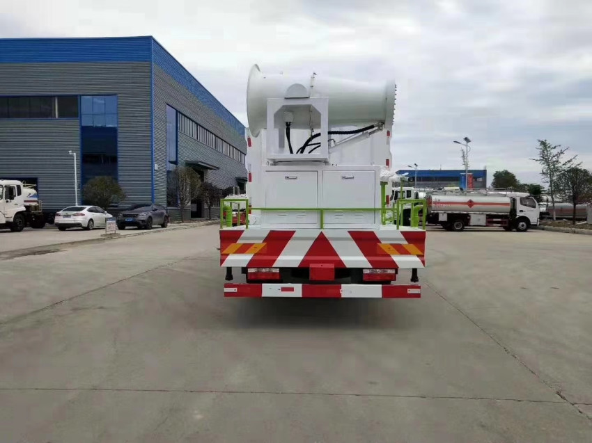 灑水車前裝有鴨嘴形噴嘴或圓錐形沖嘴,后面裝有圓柱形灑水噴嘴或蓮蓬頭噴嘴,后部有工作平臺,裝配有水炮。后還可裝8個噴嘴。