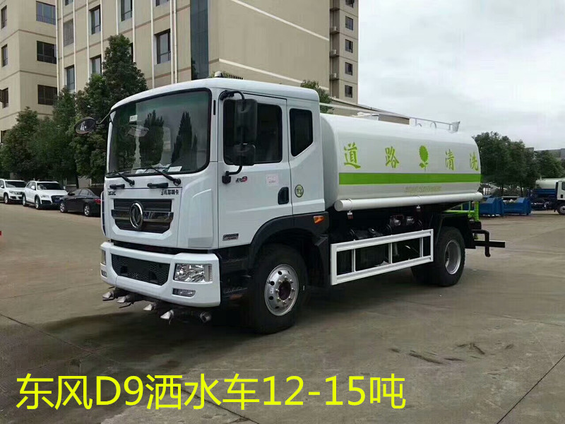 車輛型號東風D9灑水車12噸外形尺寸(mm)7700×2500×3200總質量(kg)15995額定載質量(kg)東風D9灑水車實際可裝水12噸底盤參數底盤型號EQ1165LJ9BDE軸數2軸距(mm)3950輪胎9.00R20發動機參數發動機型號YC4S160-50 ISB180 50發動機生產廣西玉柴機器股份有限公司 東風康明斯發動機有限公司排量(ml)3767 4500功率(kw)118 132上裝技術參數灑水裝置前沖,后灑,側噴,高配,后工作平臺。 射程寬度:≥16米高壓水炮柱狀、大雨、毛毛雨、霧狀等狀態 。射程距離:≥28米抽水裝置帶自吸自排裝置(可抽池塘,河溝,水井里的水) ,還帶消防接口。