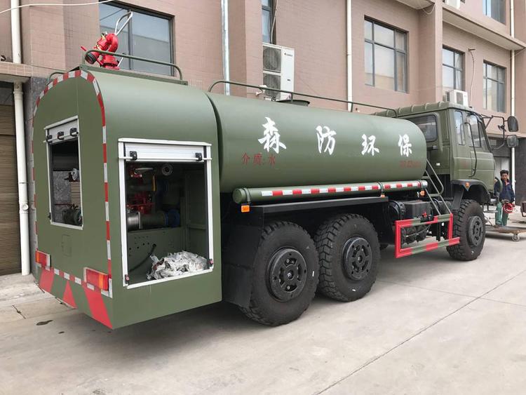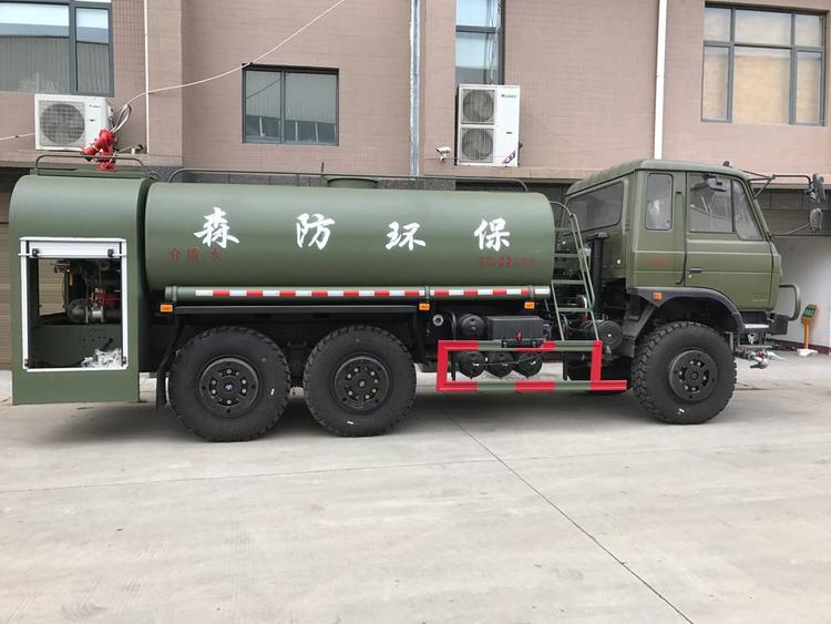 東風6驅越野水罐車,6驅沙漠運水車該系列車具有消防車功能,同時又具有灑水車所有的功能,可前沖、后灑、側噴、一車多用,總體布局結構及選裝器材亦可按照用戶要求配備,是新型環保節能的灑水系列消防車。該車采用六驅東風越野底盤,CB10/40泵,配置SP40型水炮,并加裝噴灑功能;特別適合于路況較差的山區、森林、沙漠、礦區等復雜環境。