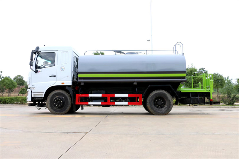 我公司生產灑水車,標配前沖、后灑、側噴、后置式工作平臺、平臺上帶水炮(可360°旋轉,可調成柱狀射程35米,也可調成霧狀射程15米,可調成:直沖狀、大雨、中雨、小雨、毛毛雨),配備大功率專用灑水泵,取力器,雜物過濾網,國標通用65型消防接口(可通過消防栓加水)、1套自流球閥系統(可自吸自排,可從河里或池塘抽水到罐體,吸程7米),2根引水鋼絲膠管。水泵、取力器、球閥、濾網均為標準產品,主管道加粗,法蘭墊、法蘭盤加厚,萬向前沖,大通徑球閥,具有性能優良,工作可靠、效率高、流量大、維修方便等特點。