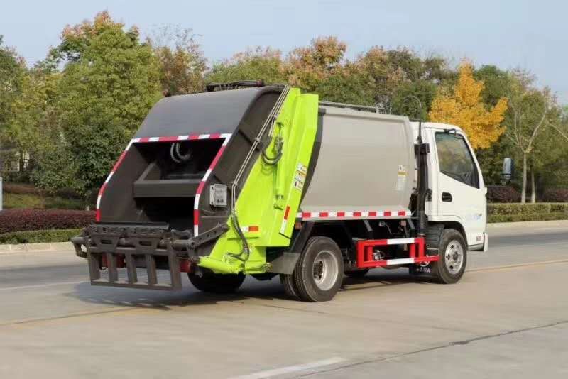新款平面弧形廂體,廂體材料為武鋼優質碳鋼,外箱尺寸:5995×2000×2450mm,有效壓縮容積4立方,PLC一鍵操作控制,手電一體操作模式,兩側雙電控,帶駕駛室內操作,底板支撐加強,雙向壓縮,開放式易清潔污水箱,解決了垃圾運輸過程中的二次污染的問題。壓縮式垃圾車具有自動反復壓縮以及蠕動壓縮功能,壓縮比高、密封性好、裝載量大﹑操作方便、環保性好﹑整車利用功率高等優點。凱馬壓縮式垃圾車小巧靈活,可在市內地下室任意穿行,C證可開。