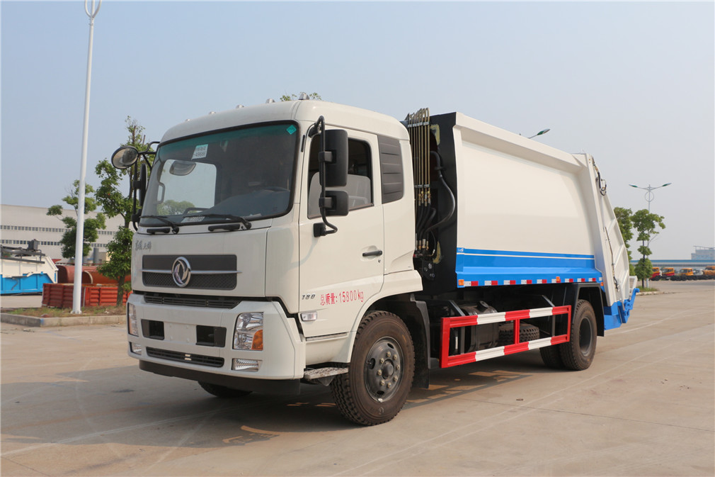 新款平面弧形廂體,廂體材料為武鋼優質碳鋼,外箱尺寸:8840×2550×3200mm,有效壓縮容積10-12立方,PLC一鍵操作控制,手電一體操作模式,兩側雙電控,帶駕駛室內操作,底板支撐加強,雙向壓縮,開放式易清潔污水箱。壓縮式垃圾車采用機電液一體化技術,借助機、電、液聯合自動控制系統、電腦控制、手動操作系統,通過填裝器和推鏟等專用裝置,實現垃圾倒入、壓碎或壓扁、強力裝填,把垃圾擠入車廂并壓實和推卸,污水全部進入污水收集箱,解決了垃圾運輸過程中的二次污染的問題。壓縮式垃圾車具有自動反復壓縮以及蠕動壓縮功能,壓縮比高、密封性好、裝載量大﹑操作方便、環保性好﹑整車利用功率高等優點。