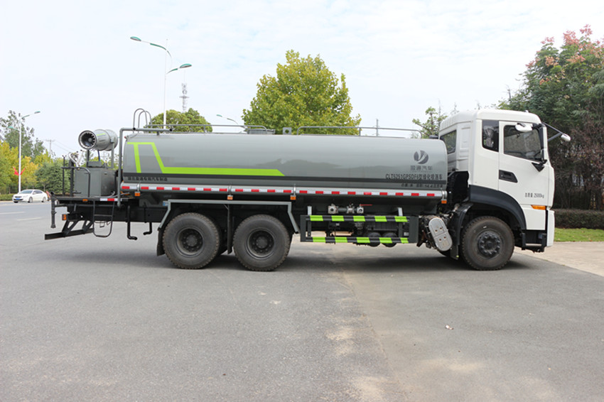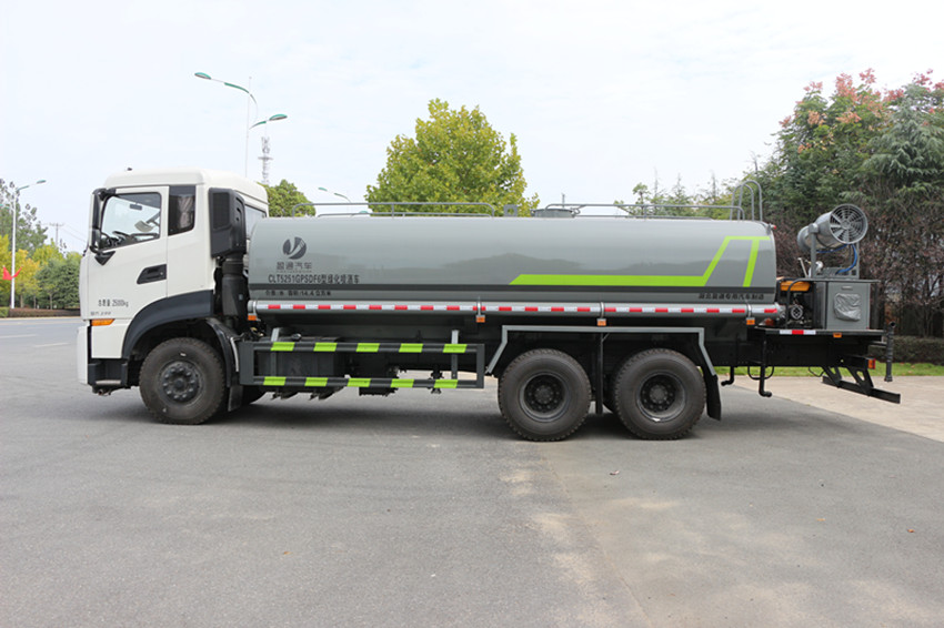 東風天龍KL后雙橋國六灑水車主要功能有:前沖、后灑、側灑、高炮(可調成柱狀或霧狀、可噴灑農藥)、帶過濾裝置、自吸自排、帶自流閥,帶消防接頭。帶有綠化水槍和可調式噴頭,噴頭角度可根據路面的寬窄進行調整,廣泛用于環衛、園林、公路等部門。灑水車罐體采用武鋼優質碳鋼板材制作,采用大型卷板機一次成型,罐體內部采用防浪板結構,可有效阻止罐體內部水的晃動性,加強車輛使用穩定和罐體使用壽命。封頭及罐體結合處采用先進的弧形對接焊接工藝。東風天龍KL后雙橋國六灑水車,該車的改裝部分,設計上突出了多功能和人性化理念,基本做到了一車多用,功能齊全,美觀大方;在制作上選用的配套件都是國內同行業中的優質產品,對制作工藝進行嚴格把關;在安全性能上,該車在試制和檢驗階段對環保、燈光、制動、組合分配,側防護等項都進行了嚴格的檢測,并進行了49項技術參數、5千公里路試檢測。