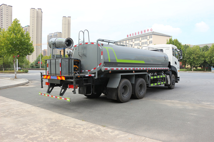 國六東風天龍18方灑水車上裝配置:配備的是天億50-110水泵,嘉善取力器,罐體采用武鋼優質板材制作的常規方圓罐,厚度5mm,內部防腐處理最大限度延長了此環衛車的使用壽命,整車尺寸:10060*2550*3200mm,罐體尺寸:6900*2300*1320mm,容積約17.8方,超大容量省時又省力,鮮艷的青綠搭配高級灰引領時尚感觀,全車大通徑球閥,標配前沖,后灑,側噴,車身側方配有消防球閥,能吸能排,更能在發生火災時協助消防車滅火,罐體后帶綠化工作平臺,一次性沖孔平臺,干凈防滑,公交護欄已成為標配,環衛路上安全更重要,平臺上安裝有灑水高炮,射程40米左右,加裝高位花灑,尾部加裝箭頭燈,行車途中閃亮轉彎,前沖后灑配備四個氣動球閥,無需下車即可完成灑水操作,尾部右側下方自流口,前沖后灑側噴帶高炮和高位花灑,客戶可根據實地需求自由調節成水柱、小雨、大雨、毛毛雨及雨霧狀。