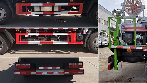 江淮牌抑塵車側防護及后下部防護均采用Q235A材質,均采用焊接連接,后下部防護尺寸:60×120(mm), 離地面高度440mm;2、ABS型號/廠家為:VIE ABS-Ⅱ/浙江萬安科技股份有限公司, CM4XL-4S/4M / 廣州瑞立科密汽車電子股份有限公司.3、專用裝置為抑塵霧炮,用于城市抑塵.4、隨底盤選裝駕駛室. |